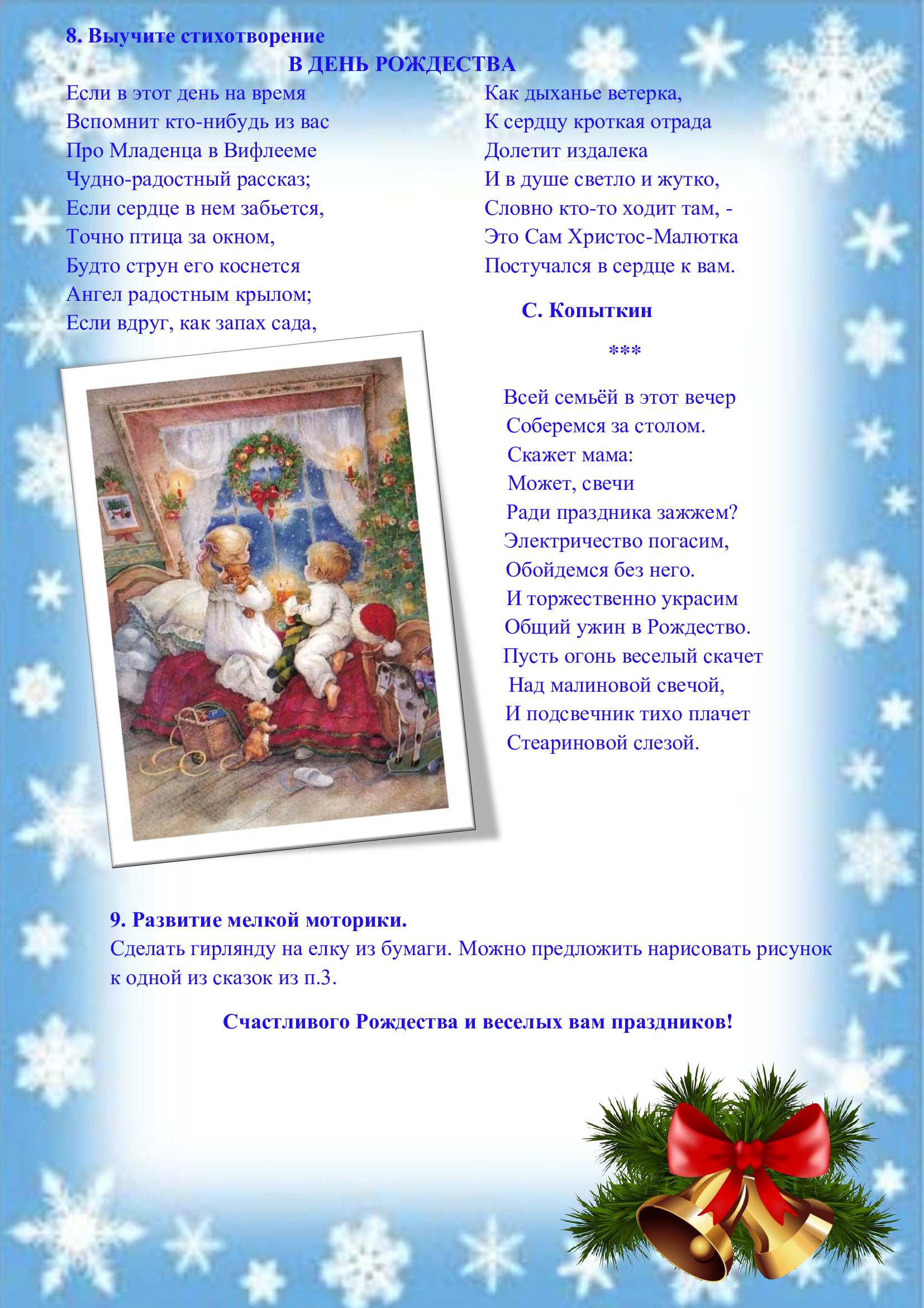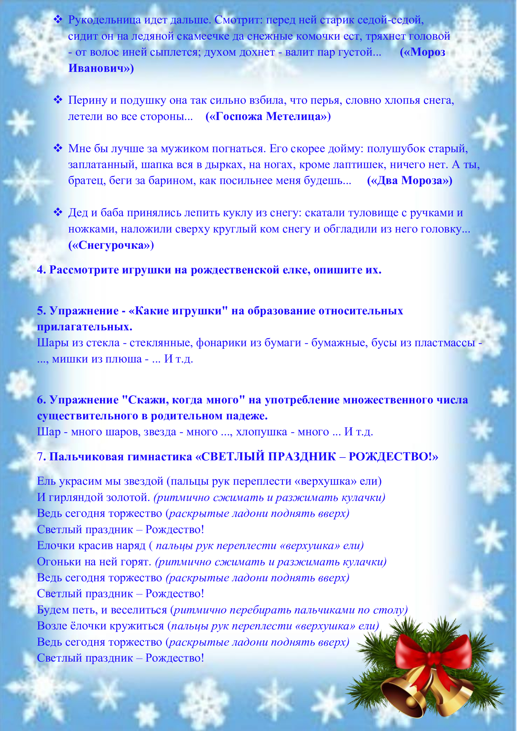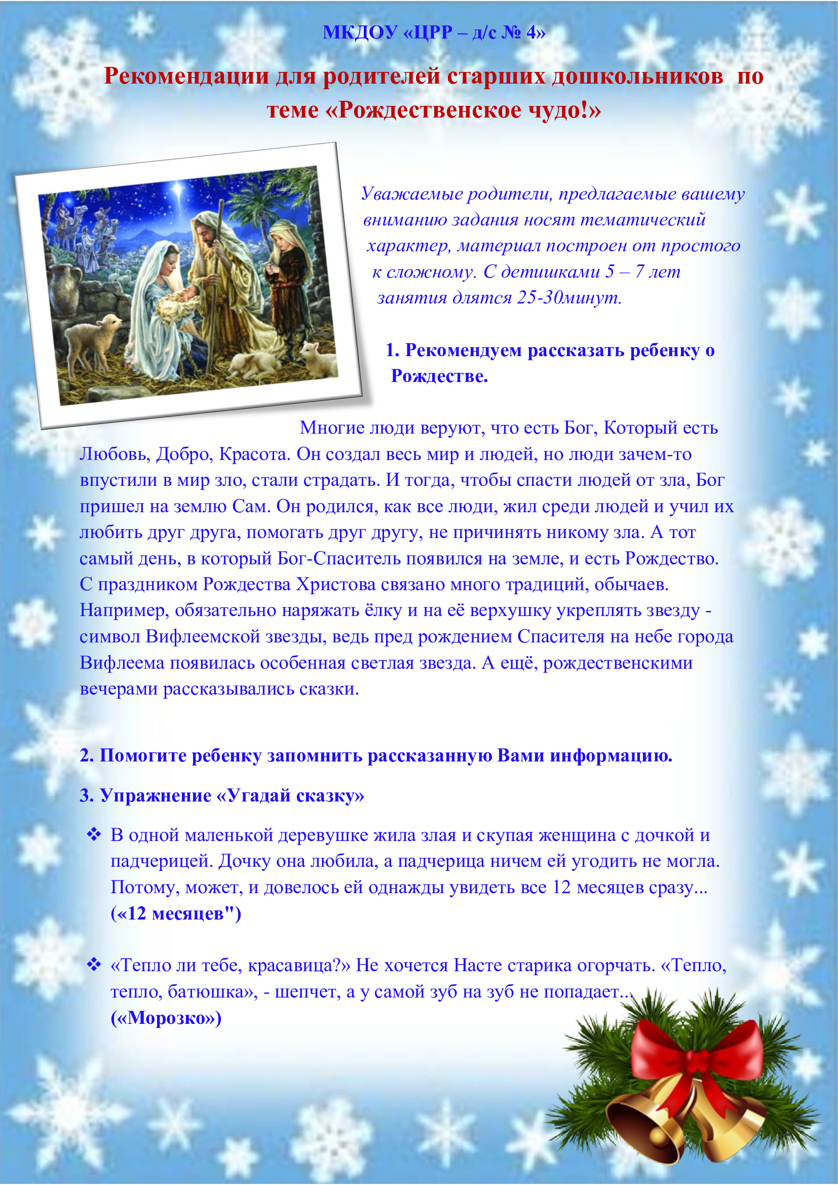 - Рекомендации для родителей старших дошкольников по теме «Рождественское чудо!»