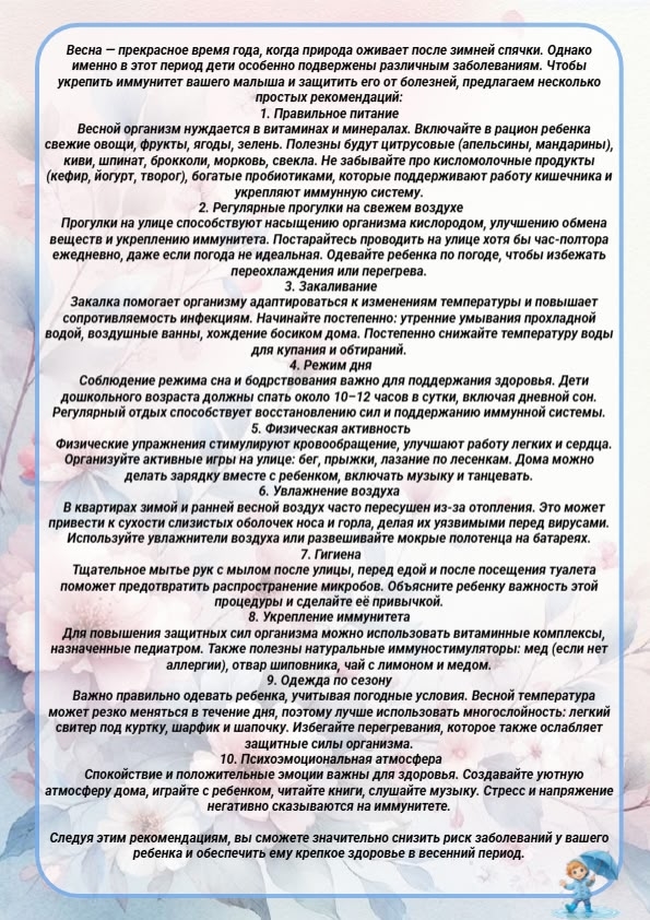 Как сохранить здоровье ребёнка весной?